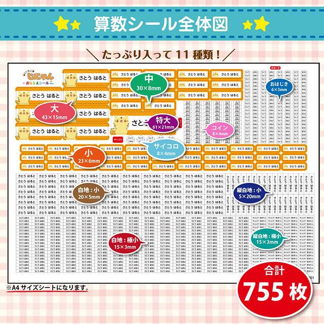 算数セットシール 耐水 名前シール ネームシール 入学 入園 入学祝 卒園 食洗器・レンジOK 洋服タグ かわいい ねこ ネコ じにゃん san-01
