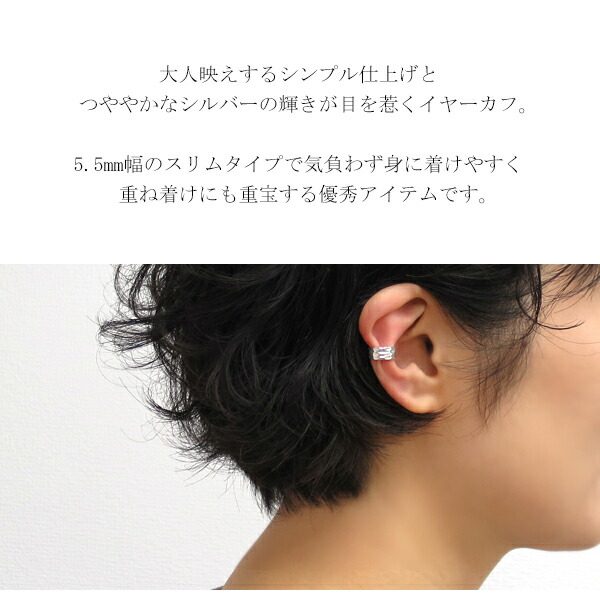 幅5.5mm 槌目 シンプル イヤーカフ スリムタイプ (1P/片耳用)