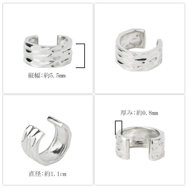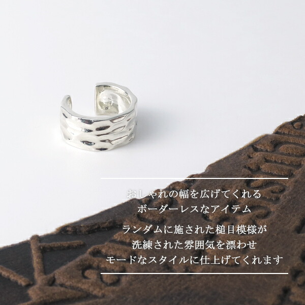 イヤーカフ メンズ レディース シンプル 槌目 鏡面 1P 片耳 おしゃれ ノンホールピアス イヤークリップ カフス
