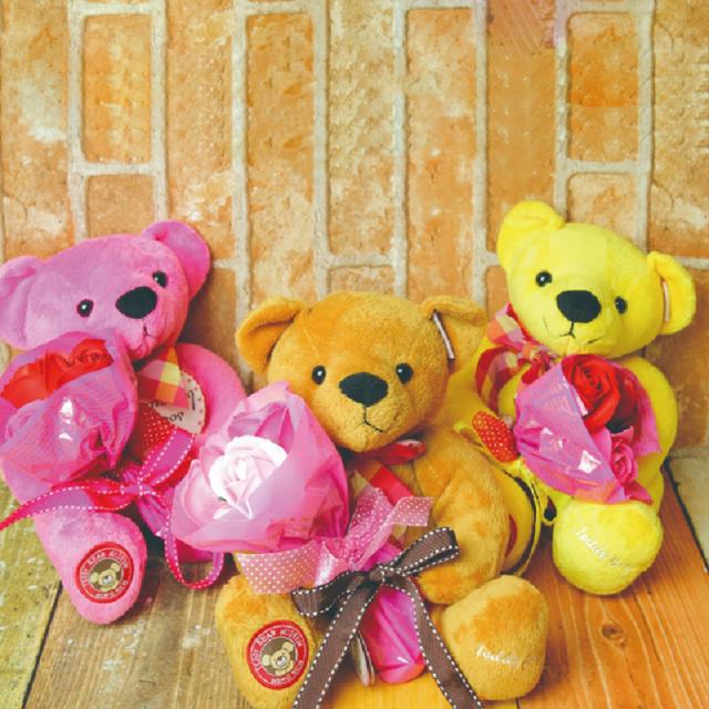 ソープフラワー 花の形の入浴剤 & カラフルメッセージベアセット プレゼント ギフト バスフレグランス ブーケ 花束
