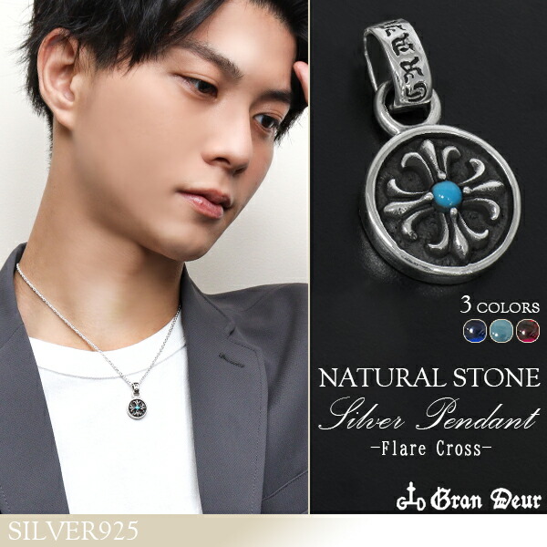 メンズネックレス ペンダントトップ 天然石 十字架 クロス 百合 シルバー925 【新宿 銀の蔵】