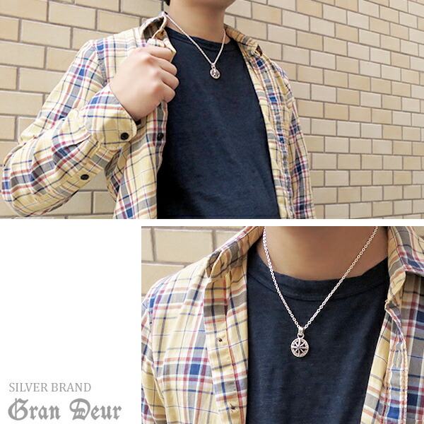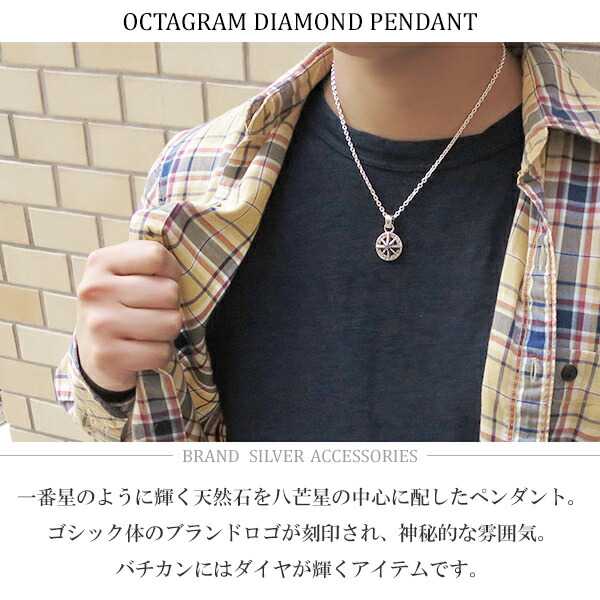 GRAN DEUR 八芒星 天然石 ダイヤモンド シルバーネックレス(チェーン付き) シルバー925 銀 ネックレス ペンダント メンズネックレス 星 メンズ ネックレス ブランド シルバー