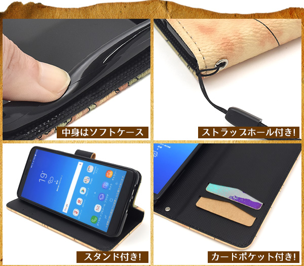 レトロな世界地図デザインがオシャレな、マップデザインの手帳型ケース! 背面を折り返すとスタンドとして使用できるので、動画視聴に最適!内側にはポケットが2つがあり、カード類を入れるのに便利です。落下防止に便利なストラップホール付きです。 内部はソフトケースなので着脱が簡単!カメラはもちろん、イヤホンや各種ボタンなどをケースに入れたまま操作可能です。※ライセンス商品ではありません。※スマートフォン、ストラップは付属しません。※デザイン、色味は画像と異なる場合がございます。