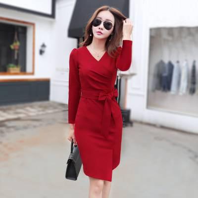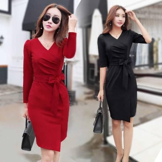 長袖 カシュクールVネック タイトラップワンピース ドレス パーティドレス 綺麗 おしゃれ 可愛い 上品 清楚 デート 結婚式 二次会