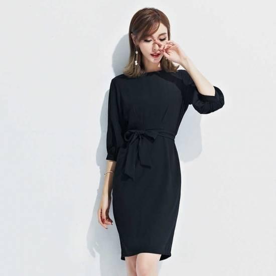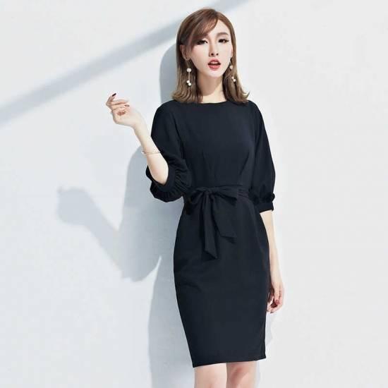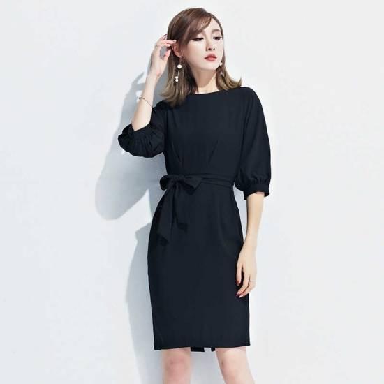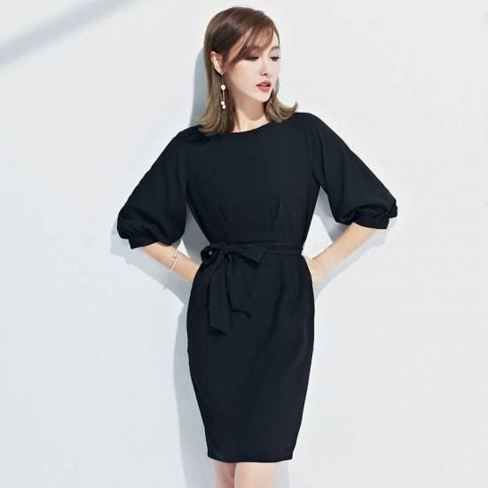 パフスリーブ ウエストリボン コクーンワンピース フォーマル ドレス パーティドレス 綺麗 おしゃれ 可愛い 上品 清楚 デート 結婚式