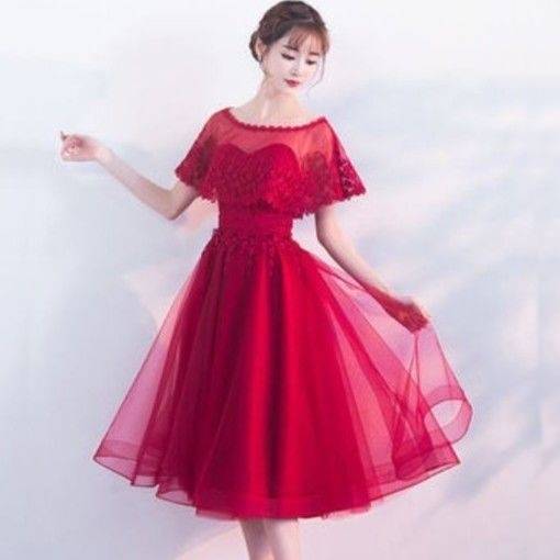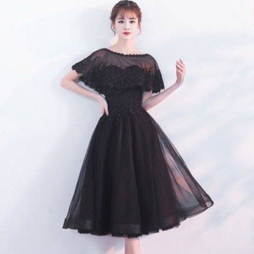即納あり パーティードレス 二次会 お呼ばれ 謝恩会 演奏会 黒 赤 大きいサイズ ゆったり大きいサイズ ひざ丈 刺繍 着痩せ 個性的 花柄 レース 20代 30代 春 夏 大人可愛い フェミニン ガーリー チュール フリル 透け感 シフォン ケープ風 ワンピース デート 女子会