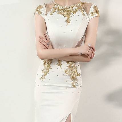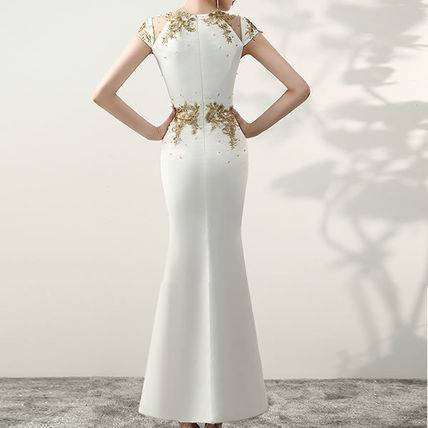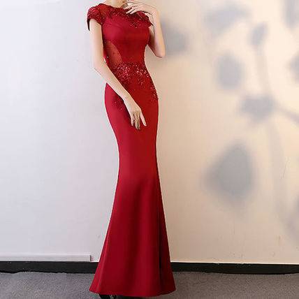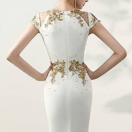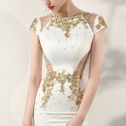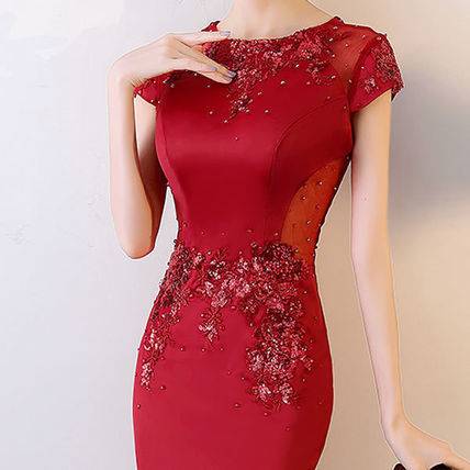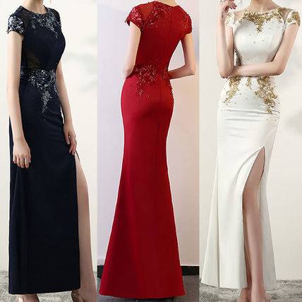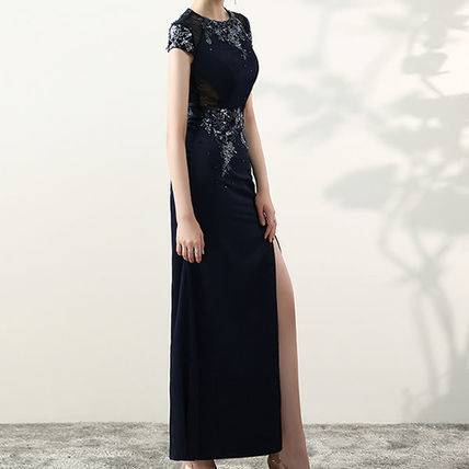 ロングドレス 黒 パーティードレス チャイナドレス 春夏 結婚式 二次会 披露宴 ブラック 大きいサイズ ロング丈 マキシ丈 ノースリーブ 半袖 袖あり タイト 刺繍 ビジュー ビーズ 透け感 シースルー スリット ラウンドネック 20代 30代 セクシー ゴージャス