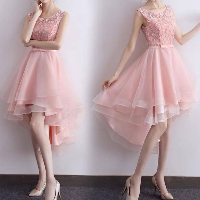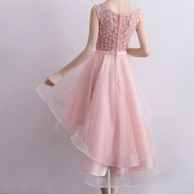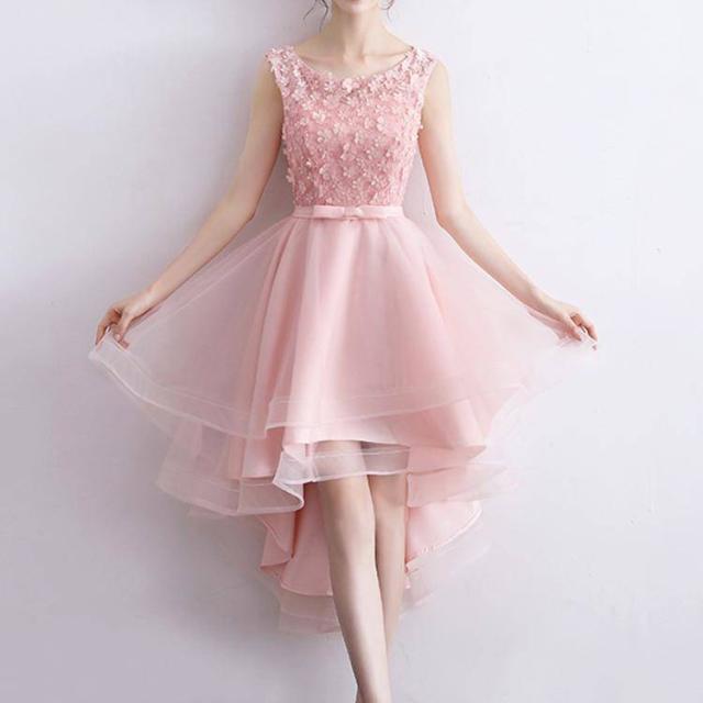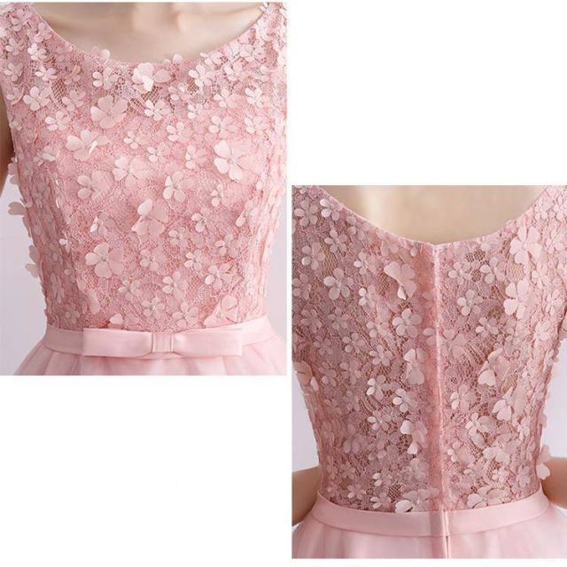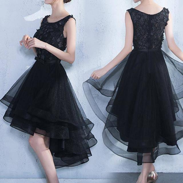 パーティードレス 花柄 花びら レース フィッシュテール ノースリーブ ミニ丈 ショート フレア Aライン 透け感 チュール Uネック