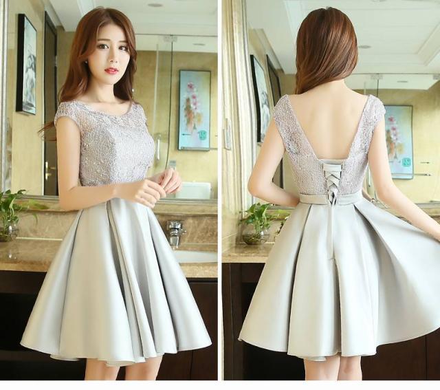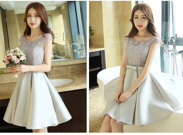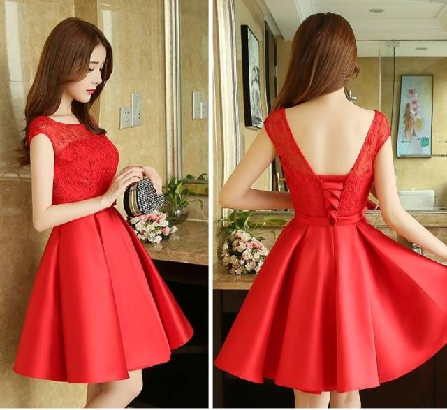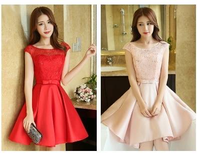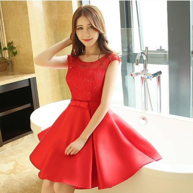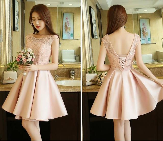 パーティードレス ワンピースドレス 春夏 デート 女子会 記念日 ピンク シャンパン 大きいサイズ ひざ丈 フレンチスリーブ 半袖 袖あり Aライン Xライン フレア 刺繍 レース 花柄 透け感 シースルー ラウンドネック 20代 30代 大人かわいい フェミニン ガーリー