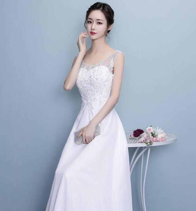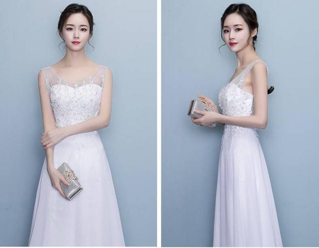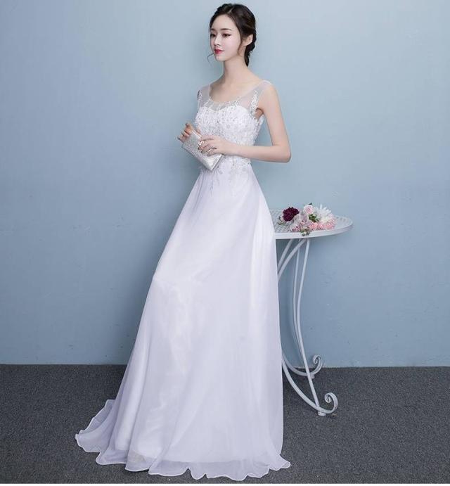 ロングドレス スレンダーライン パーティードレス ウエディングドレス 春夏 結婚式 花嫁 披露宴 ホワイト 大きいサイズ ロング丈 マキシ丈 ノースリーブ 袖なし Aライン フレア 刺繍 レース スパンコール 透け感 ラウンドネック 20代 30代