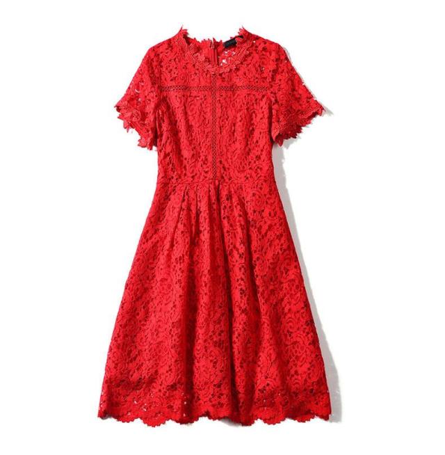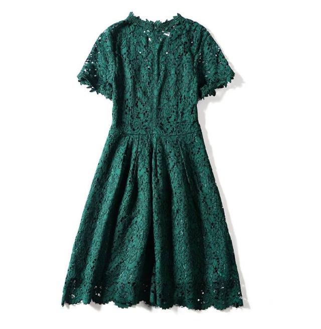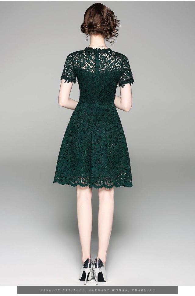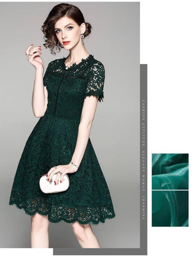 パーティードレス 新作 総レース 花柄 3色 半袖 スカラップ フレア Aライン ミニ丈 膝上丈 フェミニン エレガント パーティー 女子会