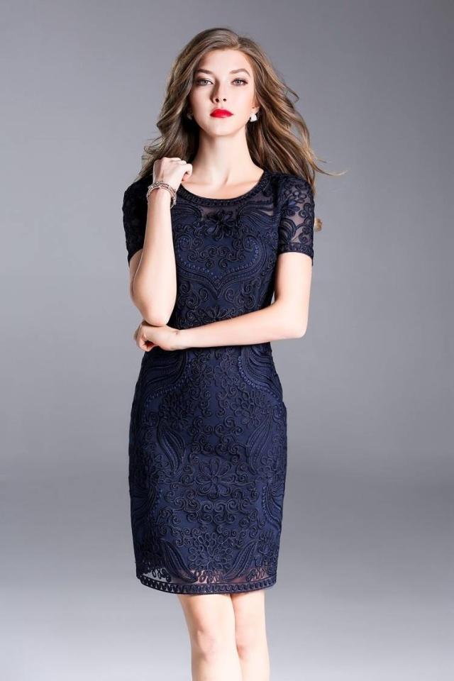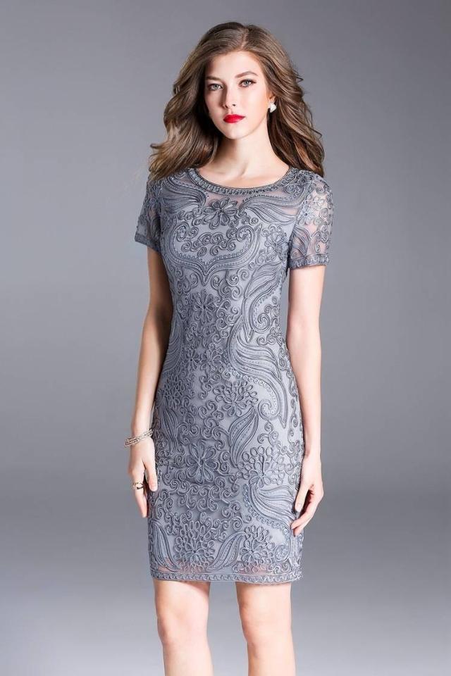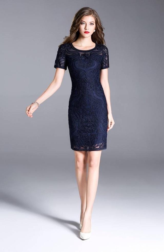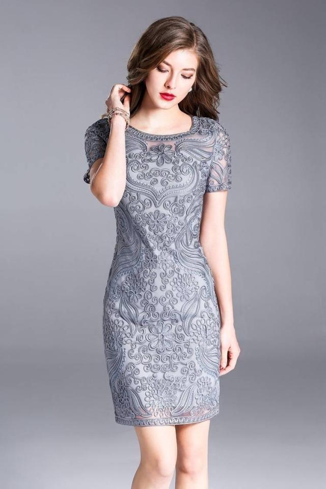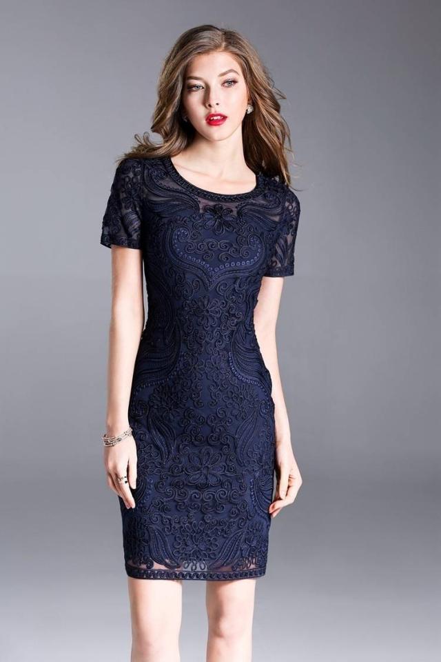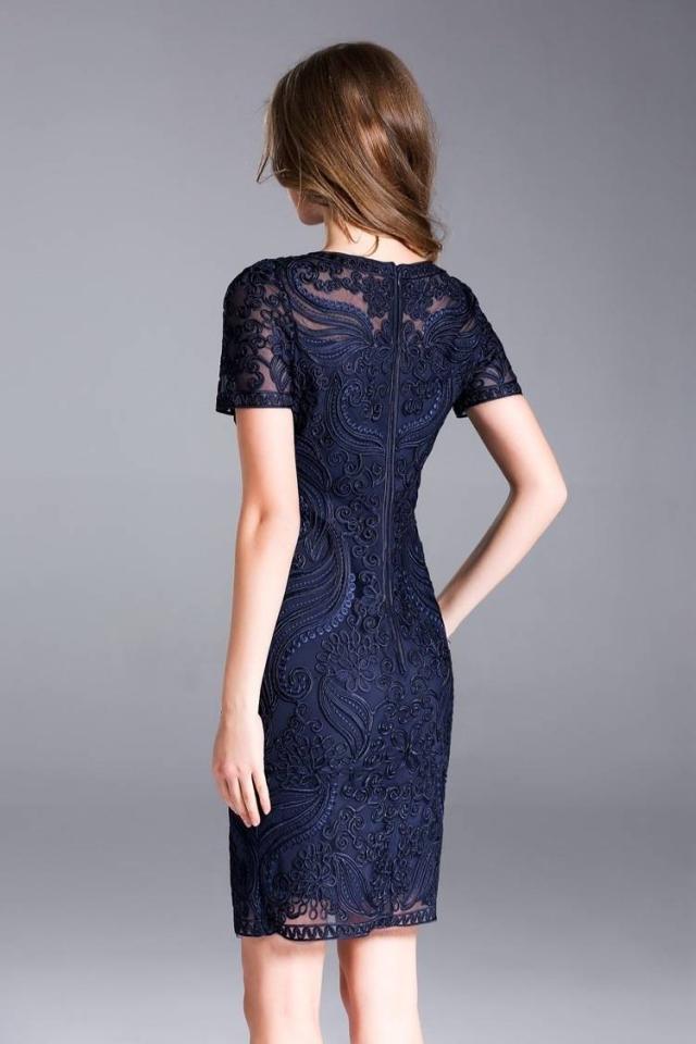 パーティードレス 上品 半袖 スリム 刺繍 花柄 2色 タイト スリム Uネック ミニ丈 フェミニン エレガント パーティー 女子会 結婚式