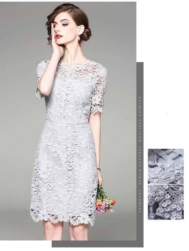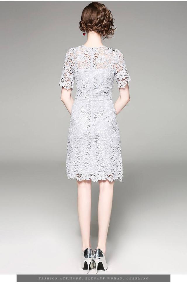 ドレス 総レース 花柄 半袖 ビーズ ビジュー ミニ丈 透け感 タイト 透け感 上品 フェミニン エレガント パーティー 女子会 結婚式