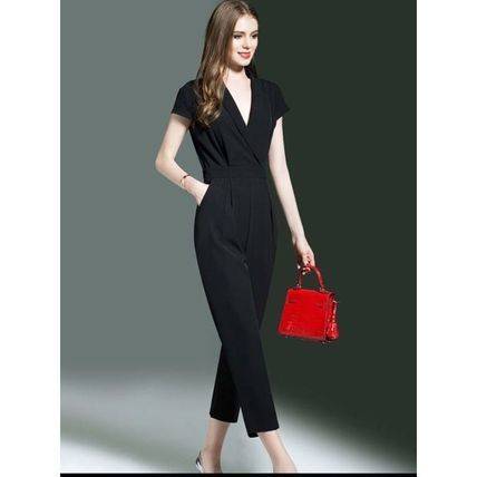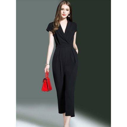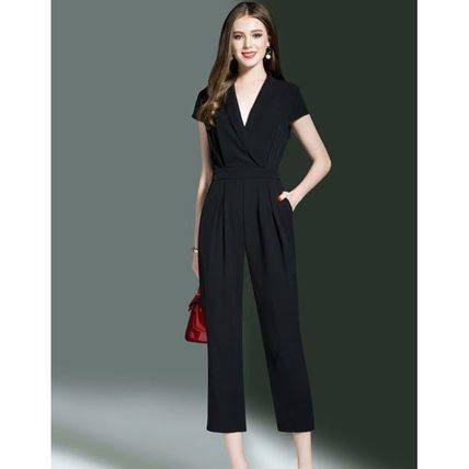 結婚式のパンツスタイル パンツドレス 大きいサイズ 春夏 披露宴 お呼ばれ 謝恩会 パーティ 袖あり 黒 30代 40代 50代
