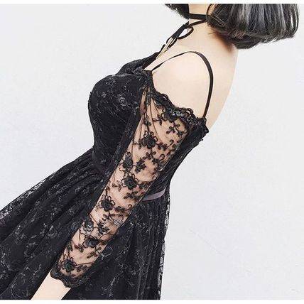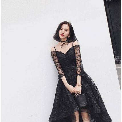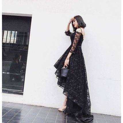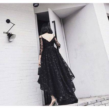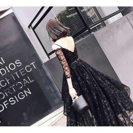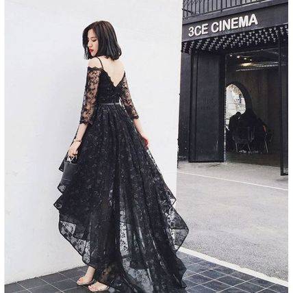 パーティードレス 結婚式 二次会 シースルー ワンピース レース 花柄 ミディアム 七分丈 レディース 2018年新作 定番 人気