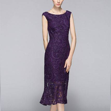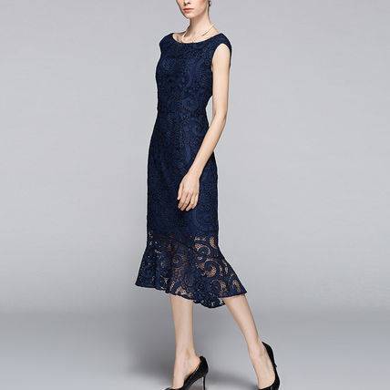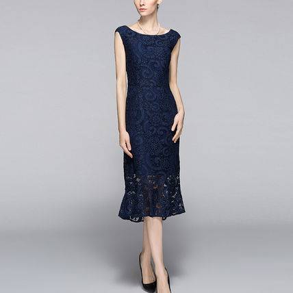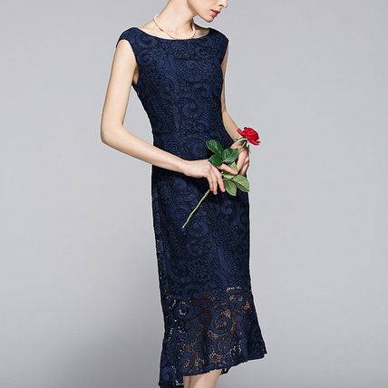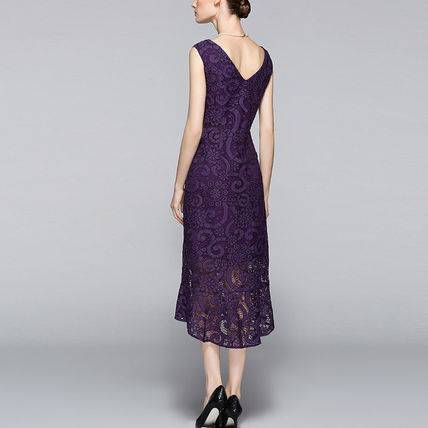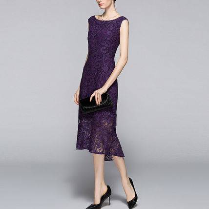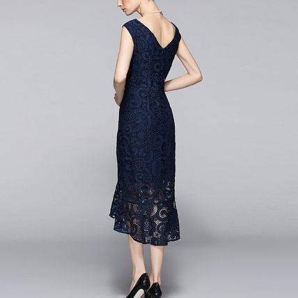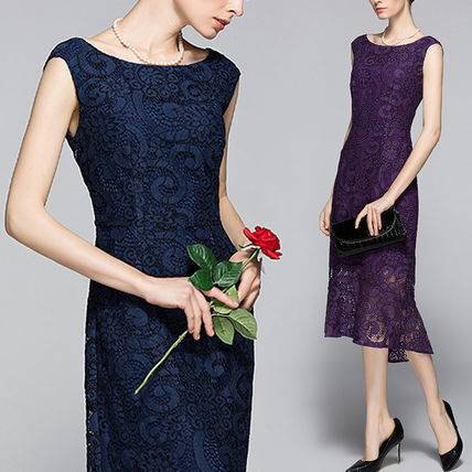 パーティードレス ワンピース 結婚式 大人レース 30代 40代 50代 花柄 Aライン ノースリーブ Uネック ロング ミモレ丈 レース