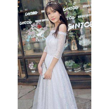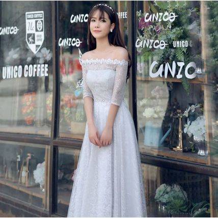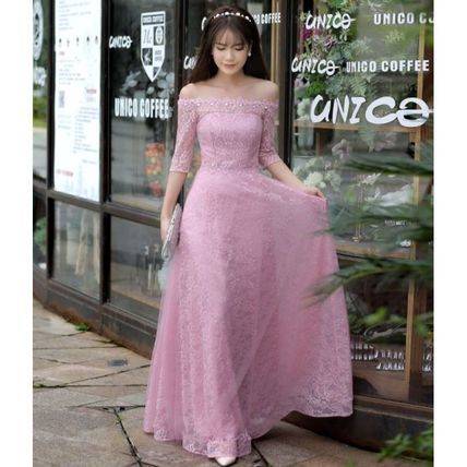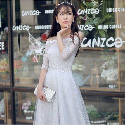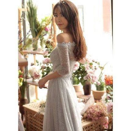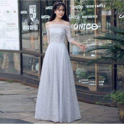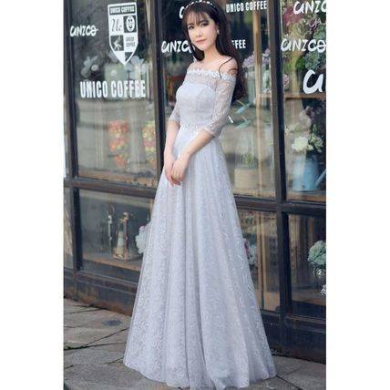 グレー インポート 大人 ロングパーティードレス 結婚式 二次会 花柄 マキシ オフショルダー ボートネック 無地 ロング レディース