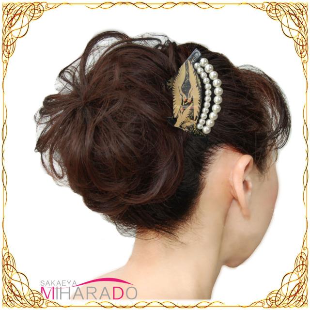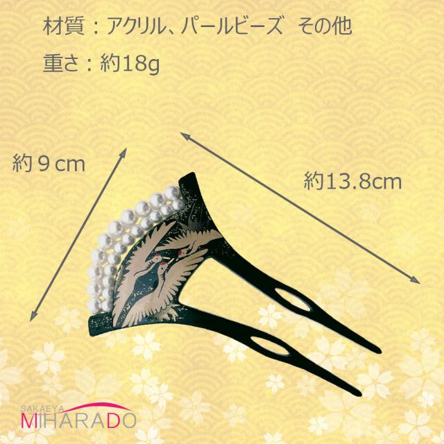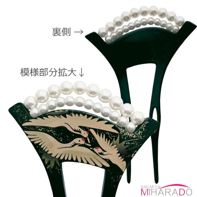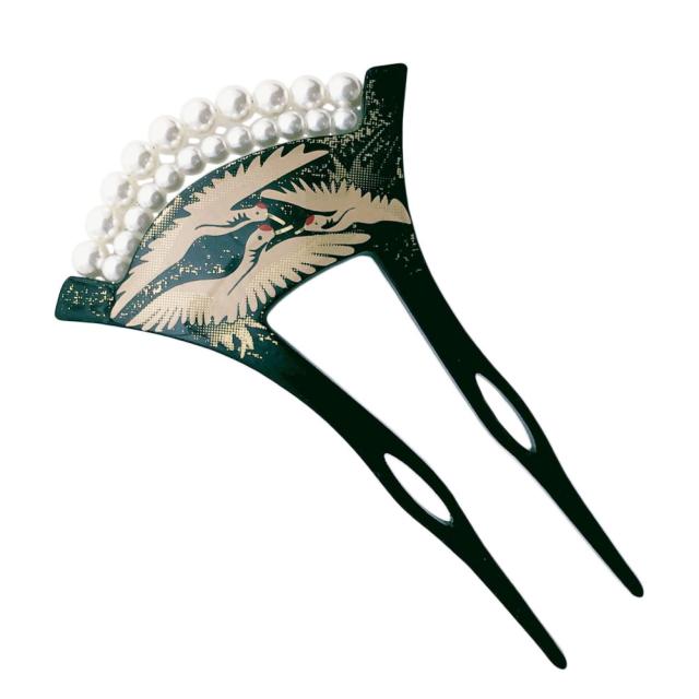 かんざし バチ型 パール 鶴 蒔絵風 シンプル 留袖 扇型