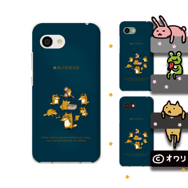 SoftBank AQUOS R2 Compact 803SH スマホ ケース カバー オワリ 「メガネのキツネ」 ブルー