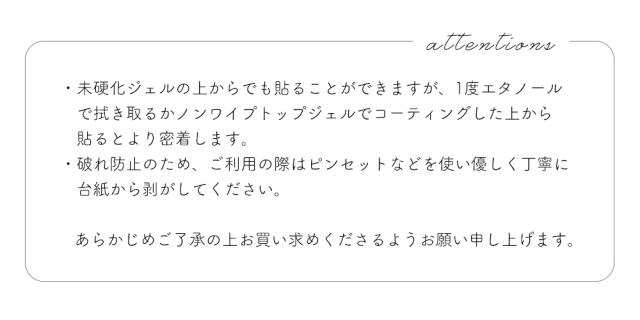 - 不器用な私でも、ピンセットで簡単に剥がせて貼ることが出来ました。よくくっ付けて、上からトップコートを塗りましたが、しっかり張り付いてくれています。 今のところ汚れを拭き取った自爪に直接貼り、透明のトップコートで仕上げただけですがもう可愛い。白系や黒系の爪に貼っても素敵なので楽しみです。