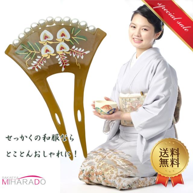かんざし バチ型 パールと藤の花のかんざし シンプル 留袖 扇型 …