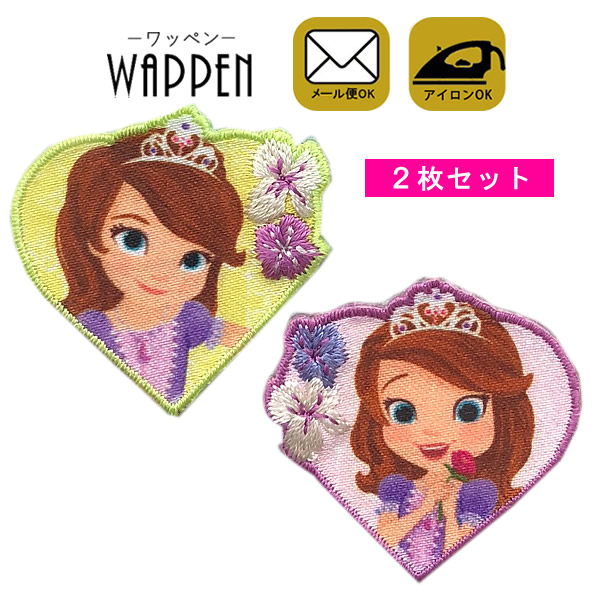 プリンセス ソフィア ワッペン 2枚セット ディズニー キャラクター 刺繍 アイロン接着 ちいさなプリンセス アップリケ母の日 プレゼント ギフト