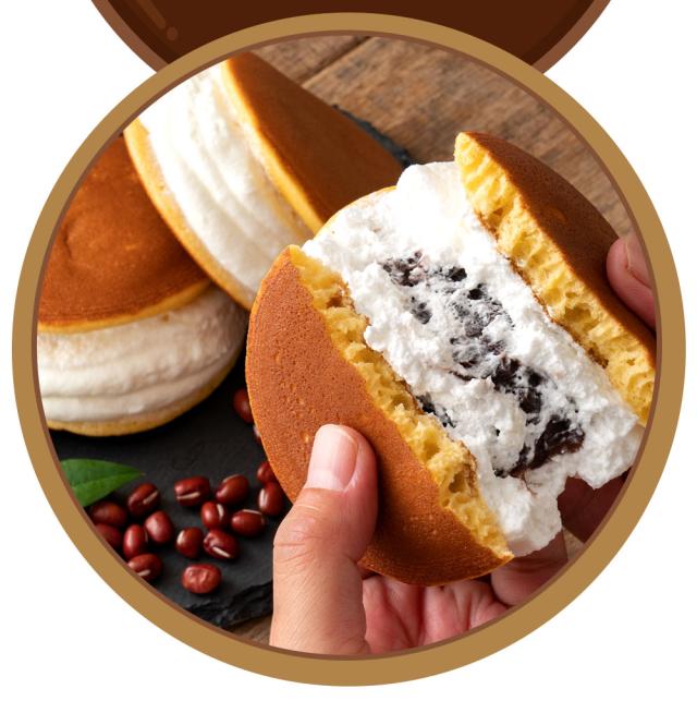 原材料:小豆煮(国内製造)、乳等を主要原料とする食品、卵、砂糖、小麦粉、みりん風調味料、水飴/膨張剤、加工デンプン、乳化剤、増粘多糖類、酸味料、(一部に乳成分・卵・小麦・大豆を含む)
