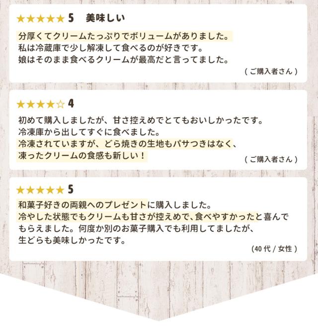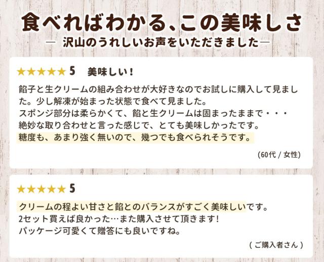 - クリ−ムとアンコの量のバランスが良い。 お値段的には、高いと思う人がいると思いますが、一度食べてみて下さい。 納得いくと思います。
