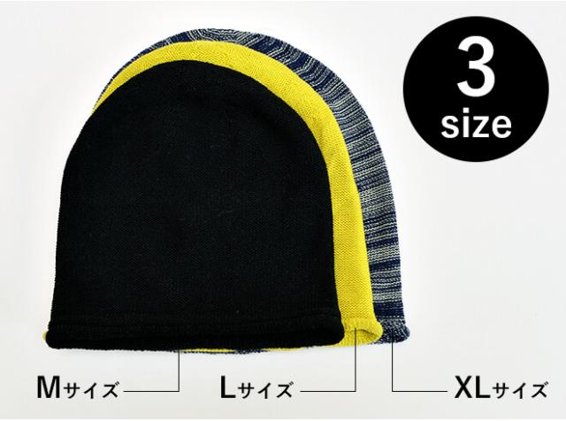 男性女性問わず被って頂けるように3サイズ展開。