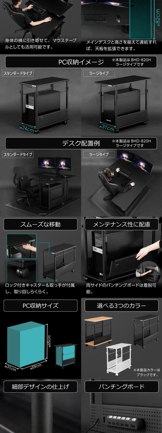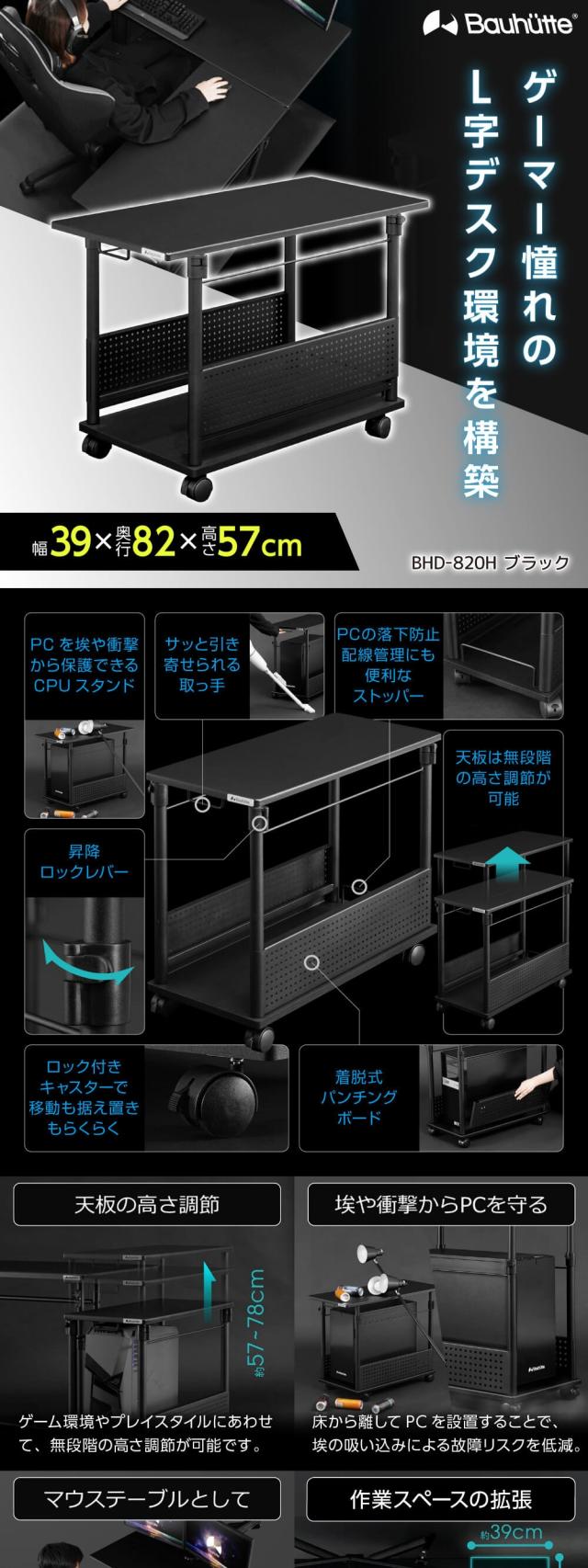 Bauhutte バウヒュッテ デスク BHD-820H-BK 昇降式L字デスク ゲーミング家具 在宅 リモート メーカー直送 日時指定不可