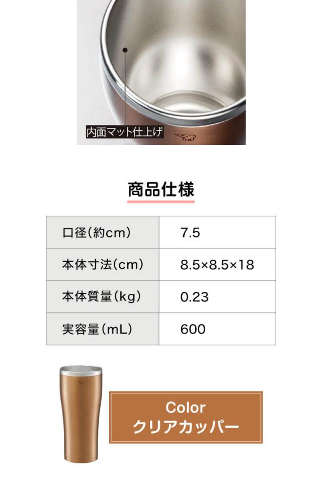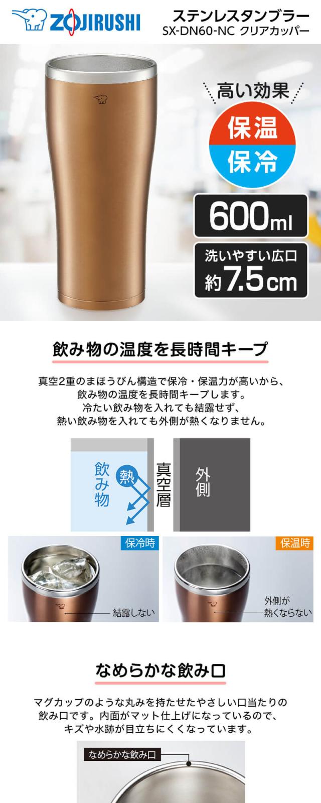 象印 SX-DN60-NC クリアカッパー [ステンレスタンブラー 600mL]