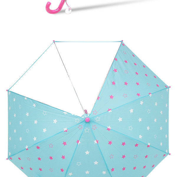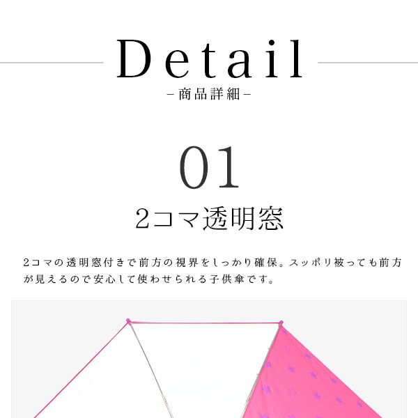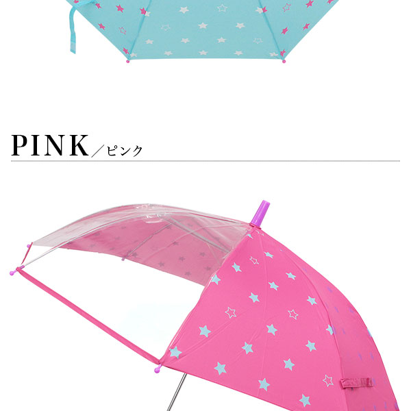 透明窓付きだから、スッポリ被っても視界も良好。かわいい安全・安心子供傘。
