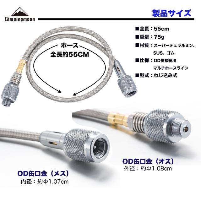 キャンピングムーン(CAMPING MOON) マルチガスホースライン ねじ込み式 OD缶仕様 全長55cm Z16