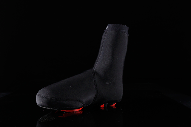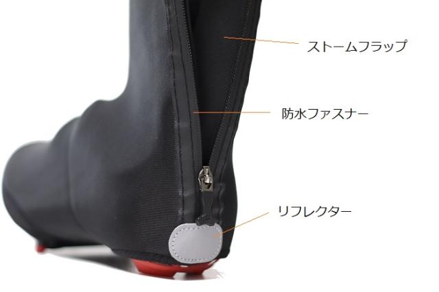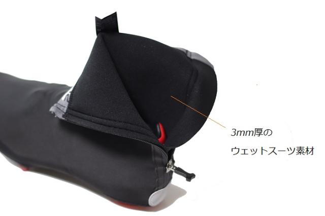 3mm厚のネオプレン同様のウェットスーツ素材を採用した防寒・防水性の高い冬用のオーバーシューズ ファスナー裏には風雨の侵入を防止するストームフラップ付 リフレクター付<