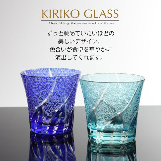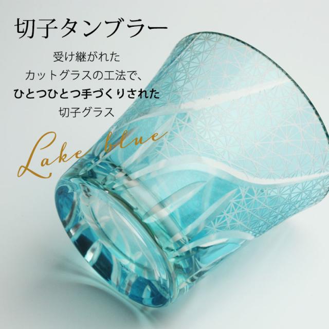 切子タンブラー 切子グラス キリコ レイクブルー 水色 おしゃれ 来客用 ガラス コップ ビール お酒 菊つなぎ 食洗機対応 名入れ可能 k_name