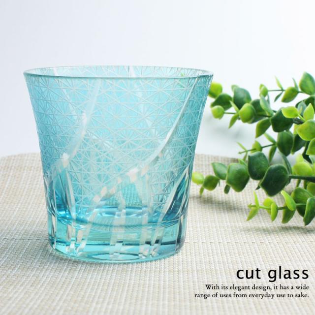 材質 硝子切子タンブラー 切子グラス キリコ レイクブルー 水色 おしゃれ 来客用 ガラス コップ ビール お酒 菊つなぎ 食洗機対応 名入れ可能