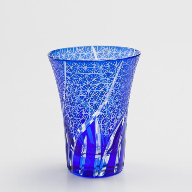 切子ビールグラス 切子グラス ビアグラス タンブラー おしゃれ コップ ブルー 青 濃青色 菊つなぎ 食洗機対応 送料無料 k_name