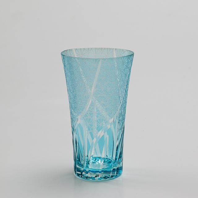 材質 硝子切子ビールグラス Lサイズ 切子グラス ビアグラス タンブラー おしゃれ コップ 菊つなぎ レイクブルー 青 空色 食洗機対応