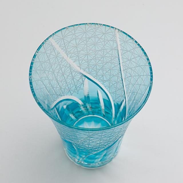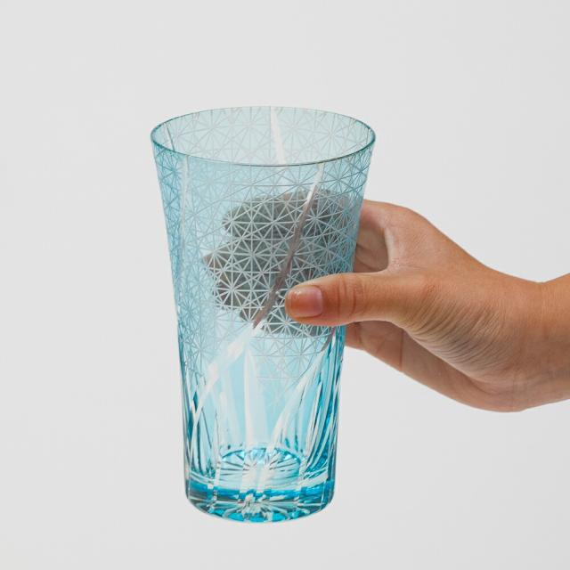 切子ビールグラス Lサイズ 切子グラス ビアグラス タンブラー おしゃれ コップ 菊つなぎ レイクブルー 青 空色 食洗機対応 k_name