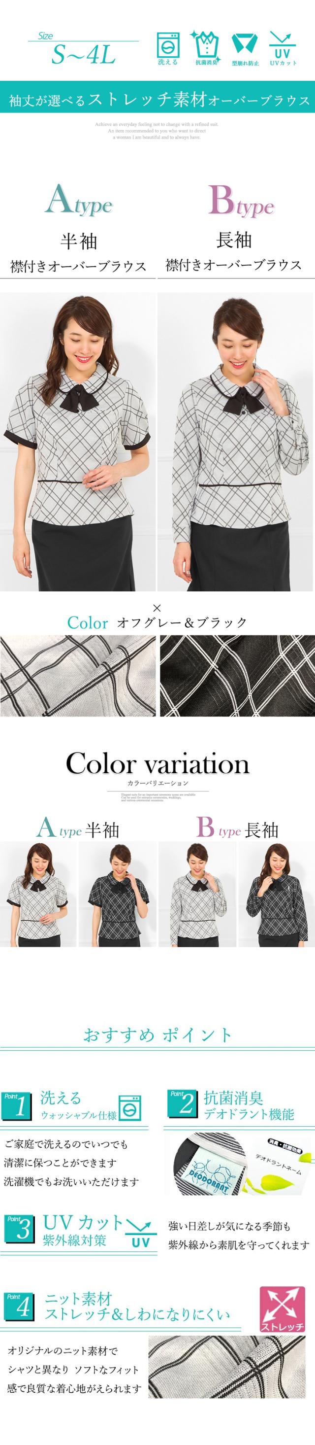 【メール便送料無料】事務服 オーバーブラウス ブラウス 半袖 制服 洗える ウォッシャブル 小さいサイズ 大きいサイズ n8080-8081[M便 1/2]