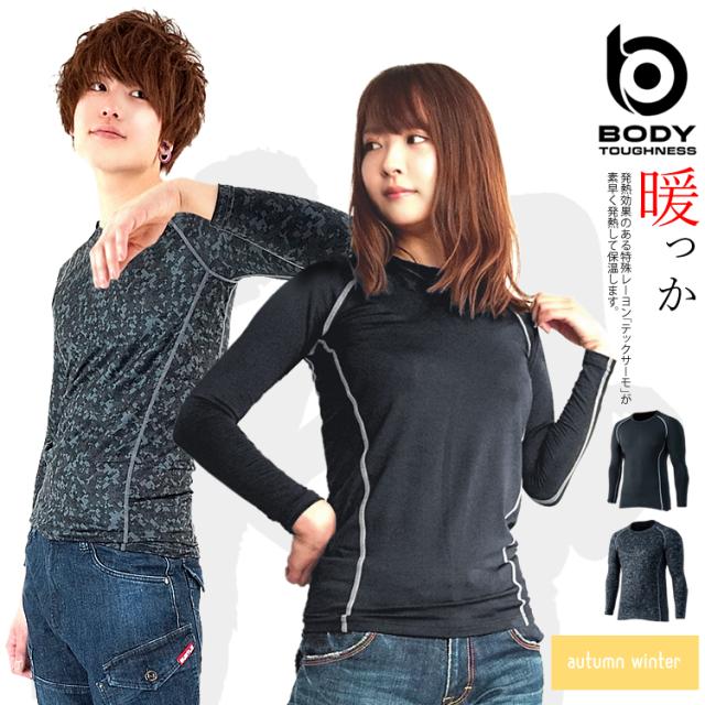 コンプレッション 秋冬用 防寒 発熱 保温 クルーネック 長袖 メンズ&レディース BT JW-174【即日発送/営業日16時迄】【1枚までネコポス対応】