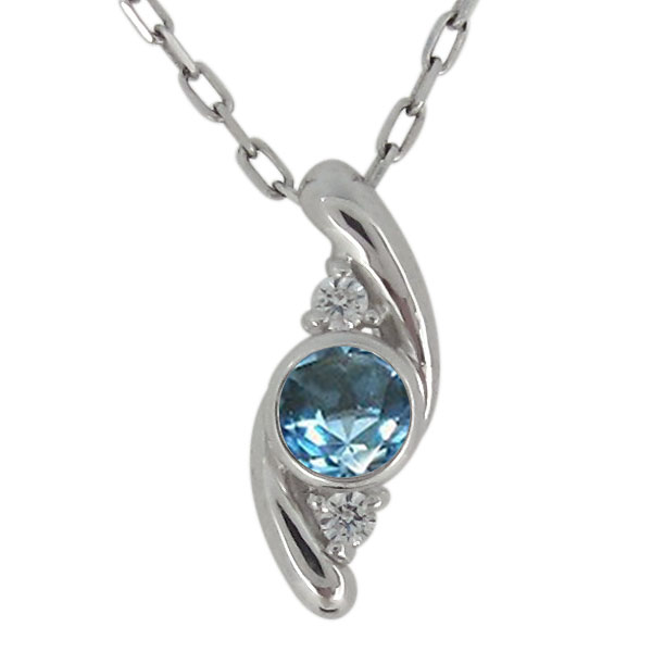 11月誕生石ブルートパーズを一粒使用したシルバー製の、シンプルデザインレディースネックレス(ペンダント)です。