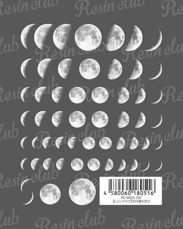 Resin club(レジンクラブ) 埋め込みレジンシール 月の満ち欠け 88×150mm ホワイト 1個 1ヶ シール レ