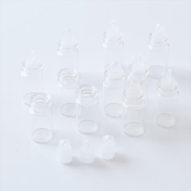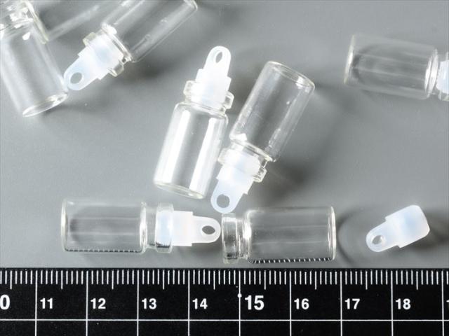 ガラス小瓶 カン付蓋 10個セット 11×22mm(フタ入れて28mm) 蓋の穴直径1.5mm フタ アクセサリー ストラップ パーツ ハンドメイド 簡単