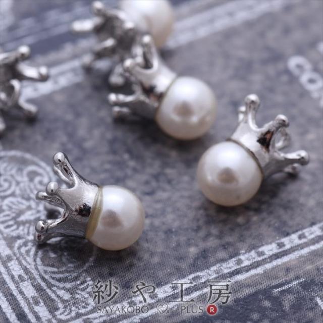 チャーム ミルククラウン パール付き カン付 シルバー 11mm 5個 5ヶ 王冠 樹脂パール アクセサリーチャーム 約1.1cm アクセサリーパーツ パーツ 問屋 メタルパーツ 金属チャーム 金属パーツ 材料 ハンドメイド資材 さや工房 手作り