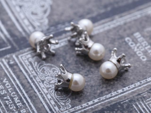 【内容詳細】樹脂パール付きチャーム ミルククラウン/王冠 約5個