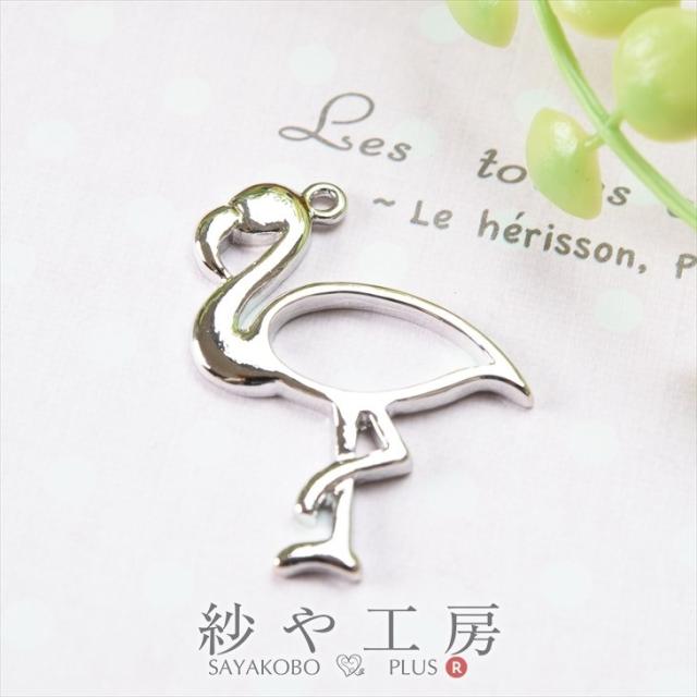 レジン空枠 フラミンゴ シルバー 1個 約34mm×27mm レジン 空枠 セッティング 鳥 夏 トリ レジン枠 UV フレーム ハンドメイド パーツ