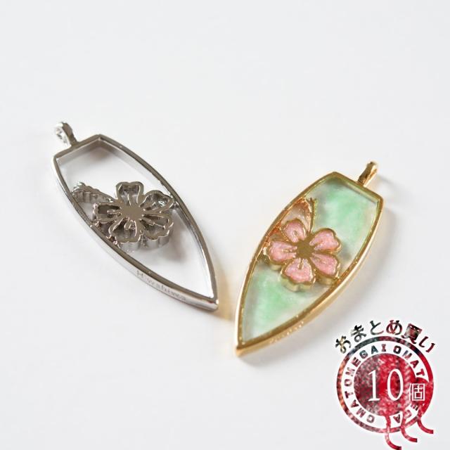 【内容詳細】レジン枠 サーフボード&ハイビスカス 紗や工房オリジナル 48mm シルバー 10個 約4.8cm カン付き