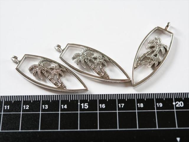 レジン枠 サーフボード&ヤシの木 紗や工房オリジナル 48mm シルバー 3個 3ヶ 約4.8cm カン付き 大き目 錫 レジン台 空枠 セッティング レジン 枠 土台 パーツ