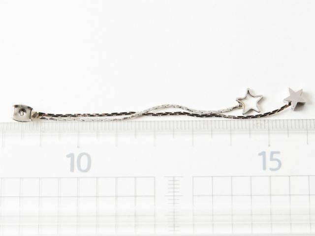 ロングピアスキャッチ真鍮製 揺れる星 シルバー 10個 約8cm 流れ星 バックキャッチ デザイン アクセサリーパーツ 金具 華奢チェーン ニッケルフリー
